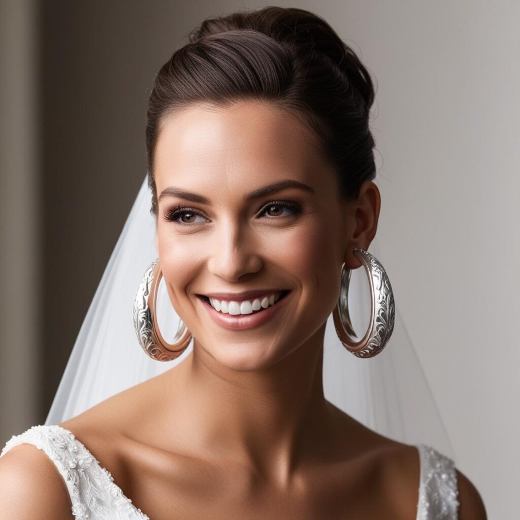 Timeless and chic, hoops bring a touch of modernity to any bridal ensemble. They’re great for brides who love clean lines and effortless style.